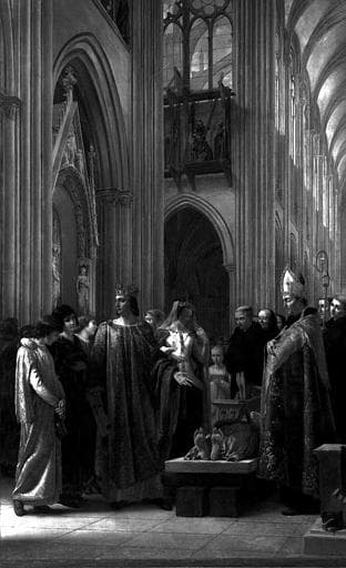Peinture sur toile dans la sacristie : Saint Louis fait rétablir le tombeau des Rois