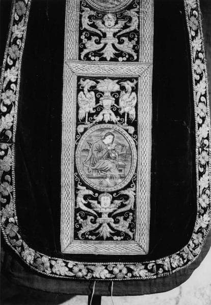 chasuble, détail du médaillon représentant saint Jean