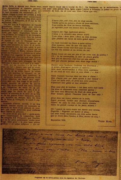 manuscrit et imprimé : lettre-poème de Victor Hugo