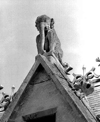 Bâtiment dit du casernement : Détail des sculptures du gâble (éléphant)