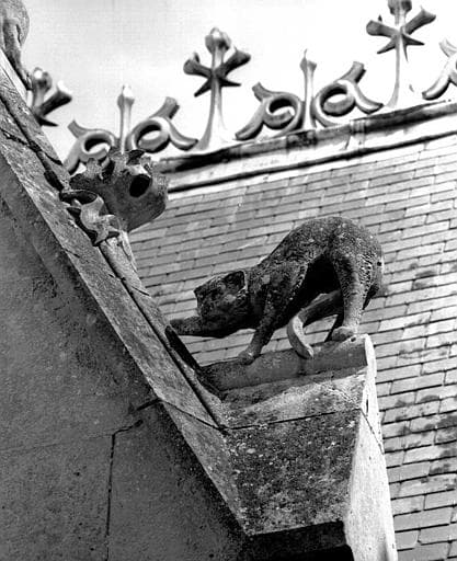 Bâtiment dit du casernement : Détail des sculptures du gâble (félin)