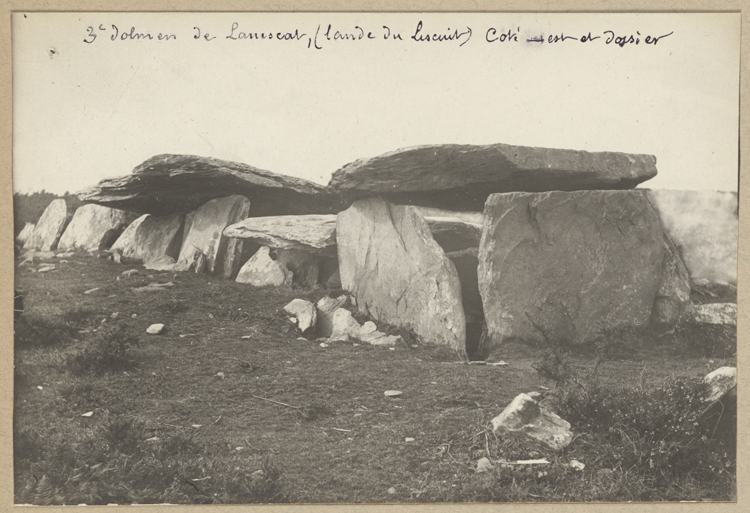 [En haut au milieu] 3e Dolmen de Laniscat (Lande du Liscuit) coté est et dossier; [avec annotations]