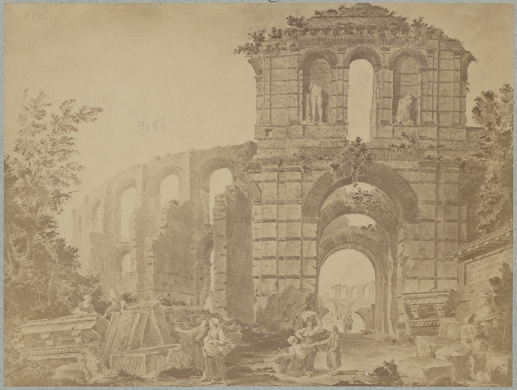 POP | Plateforme ouverte du patrimoineReproduction d’un dessin aquarellé : vue des ruines du Palais Gallien