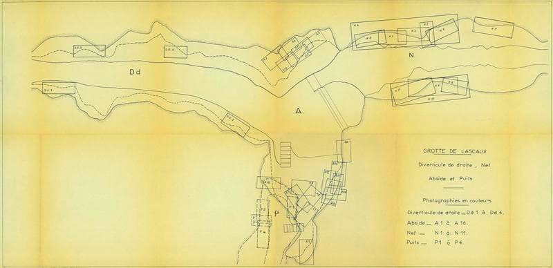 Plan de la grotte avec relevé des prises de vues (référence plan)