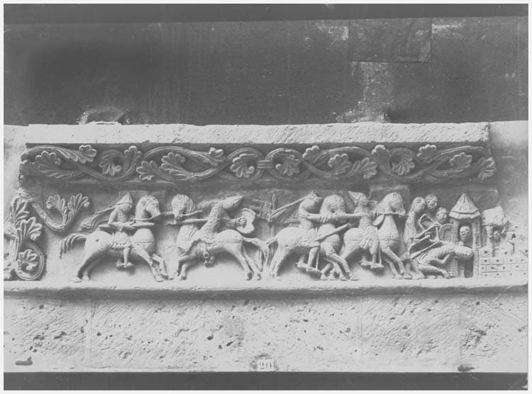 POP | Plateforme ouverte du patrimoineMoulage. Linteau de la première arcature de la façade illustrée de la Chanson de Roland (victoire de Saragosse)