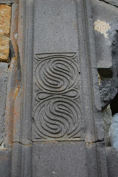 détail des sculptures des piédroits du porche d'accès occidental de l'église abbatiale