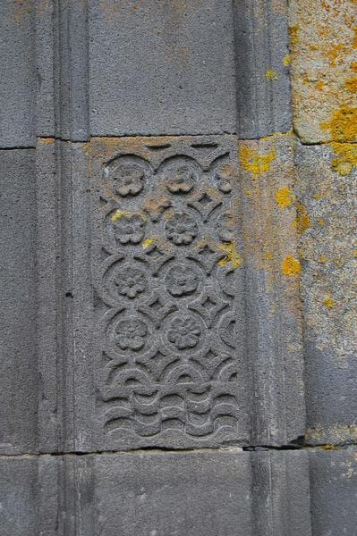 détail des sculptures des piédroits du porche d'accès occidental de l'église abbatiale