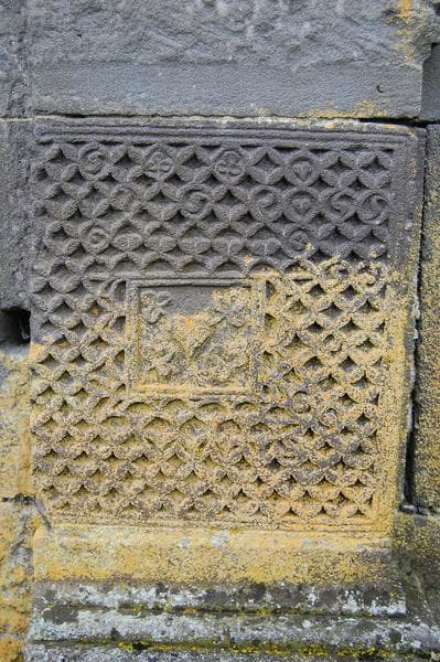 détail des sculptures des piédroits du porche d'accès occidental de l'église abbatiale