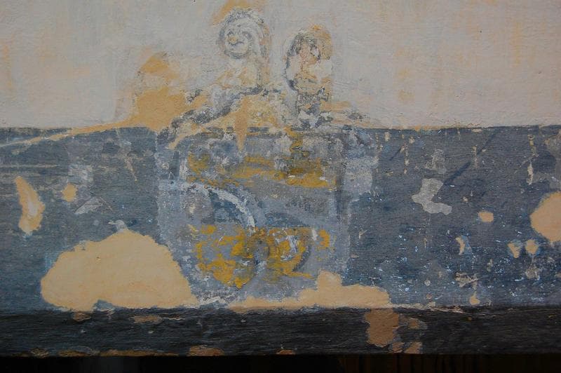 détail du décor peint sur le linteau d'une porte d'accès à la nef