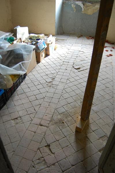 détail du décor du sol en terre cuite