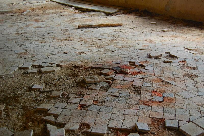 détail du décor du sol en terre cuite
