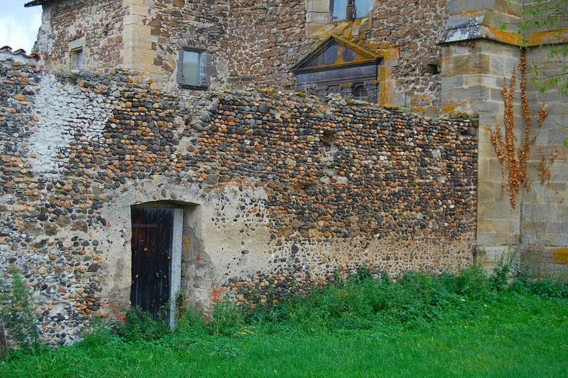 vue générale du mur situé à la droite du porche d'accès occidental à l'église abbatiale