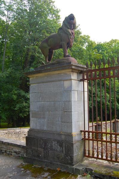 statue : lion situé sur un des piliers de la clôture nord