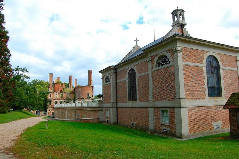 vue générale des façades nord de la chapelle, des cuisines et du château