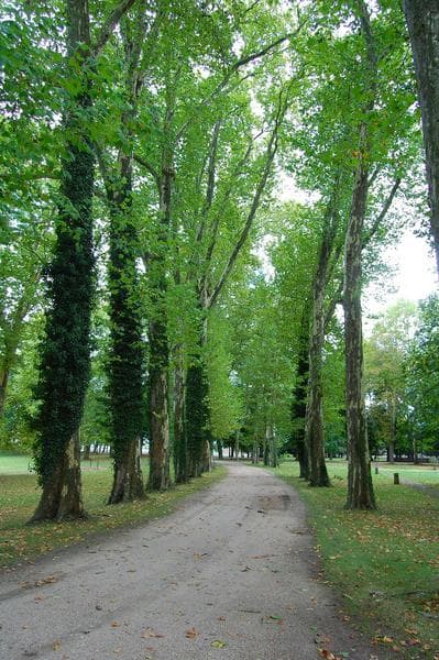 vue générale d'une allée de platanes du parc