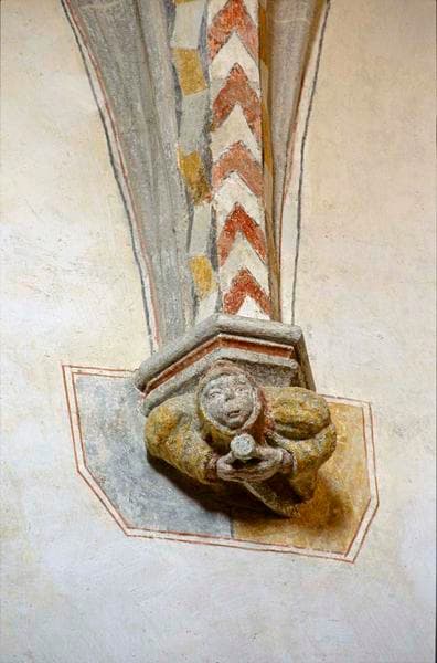 Intérieur nord de la nef : culot de retombée d'ogive, personnage
