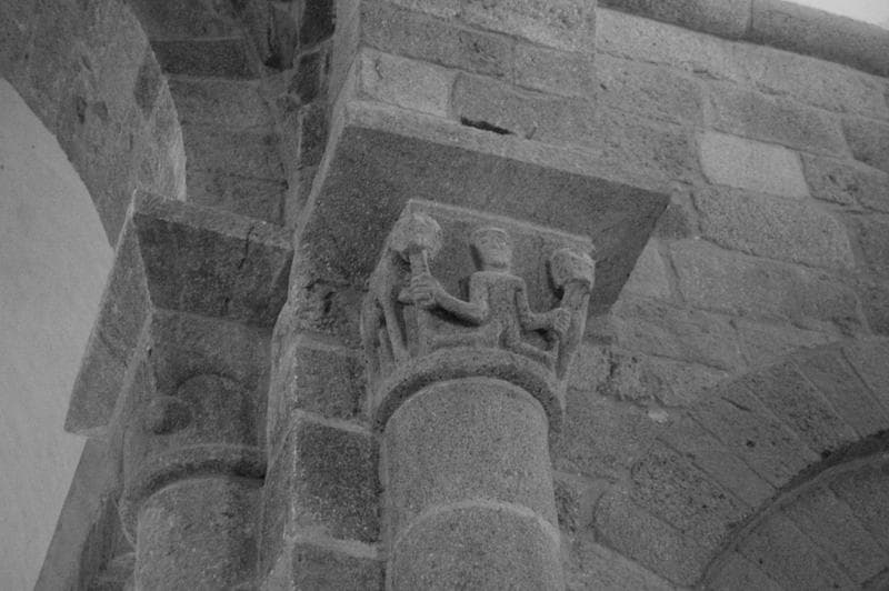 vue générale d'un des chapiteaux sculptés de la nef : Daniel dans la fosse aux lions (?)