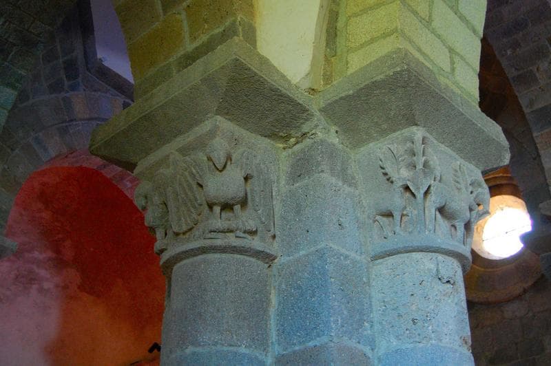 vue générale de deux chapiteaux sculptés de la nef