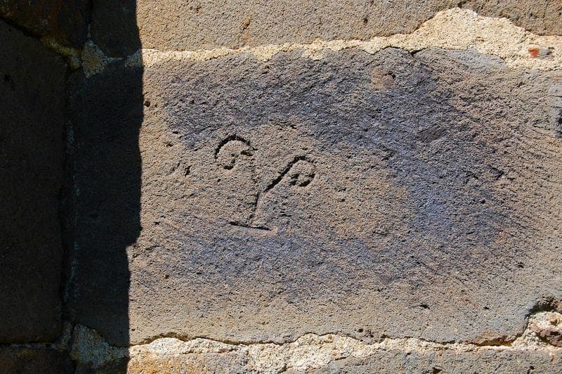 détail d'une marque de tailleur de pierre, chevet de l'église