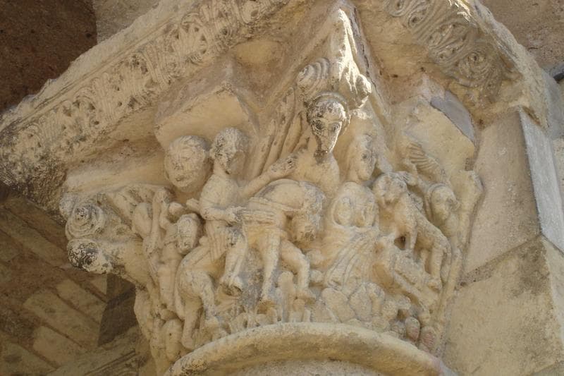 détail d'un des chapiteaux sculptés de la tour porche