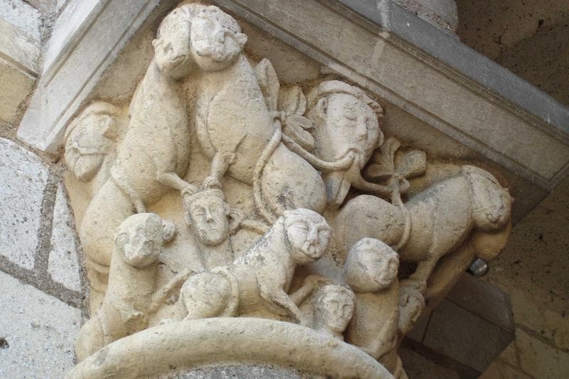 détail d'un des chapiteaux sculptés de la tour porche