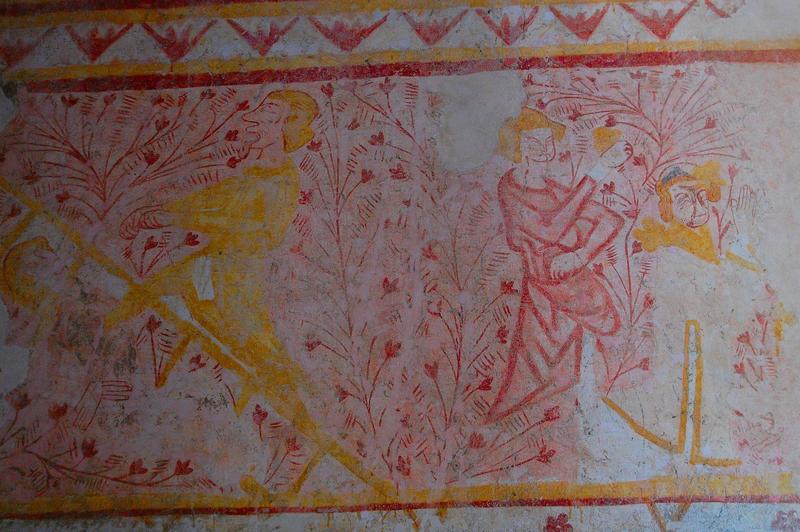 POP | Plateforme ouverte du patrimoinepeintures murales, nef, mur Nord, vue partielle : martyre de saint Emmeram de Ratisbonne, martyre de saint Etienne