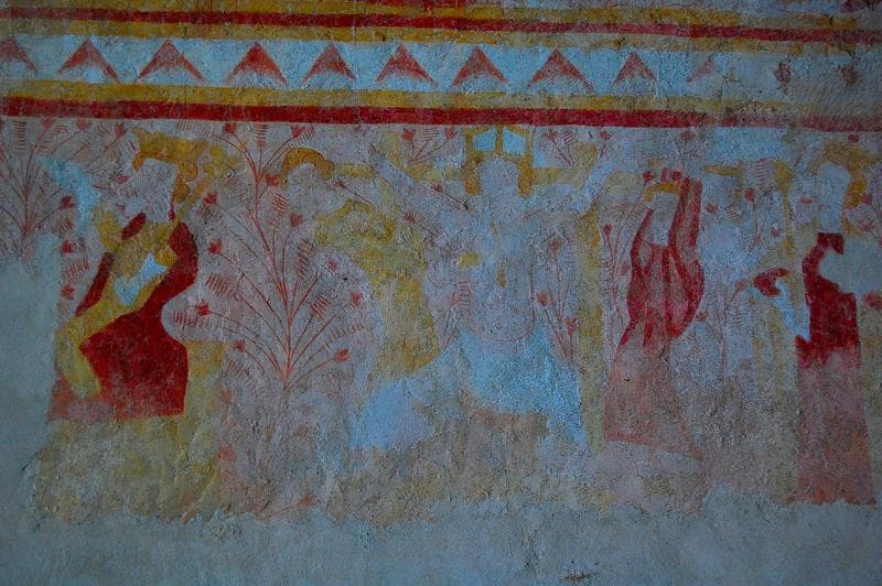 peintures murales, nef, mur Sud, vue partielle : scène de martyre non identifiée