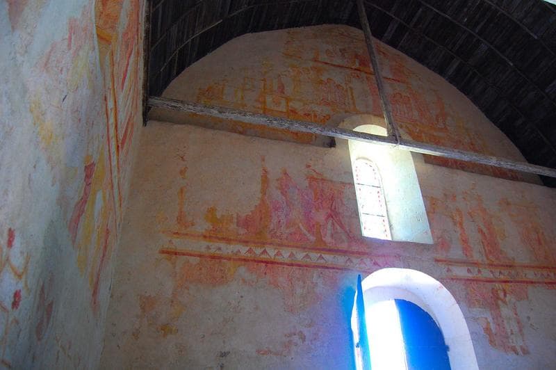 peintures murales, nef, mur Ouest, vue partielle : le jugement dernier, le Christ à la colonne