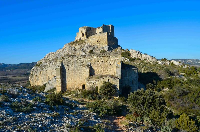 POP | Plateforme ouverte du patrimoinevue générale de l'église dans son environnement, à l'arrière plan la château de Roquemartine