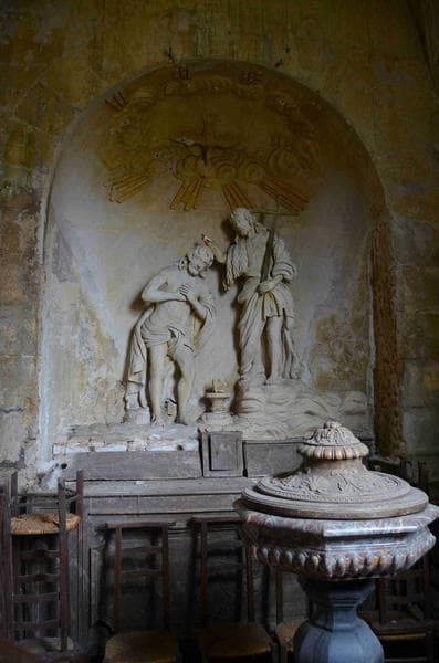 chapelle baptismale, vue partielle, haut-relief : le baptême du Christ
