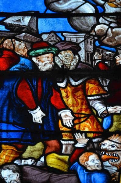 verrière de l'Apocalypse, mur Nord, détail, partie médiane de la lancette centrale, scène de la représentation de la bête