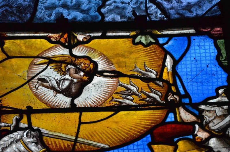 verrière de l'Apocalypse, mur Est, collatéral Nord, détail, partie supérieure, représentation de la ville sainte