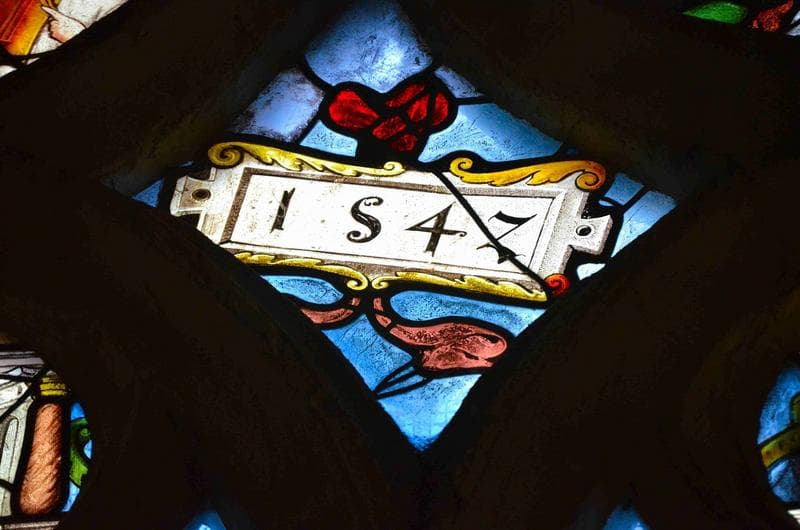 verrière : scènes de la vie du Christ, détail de la partie supérieure, date