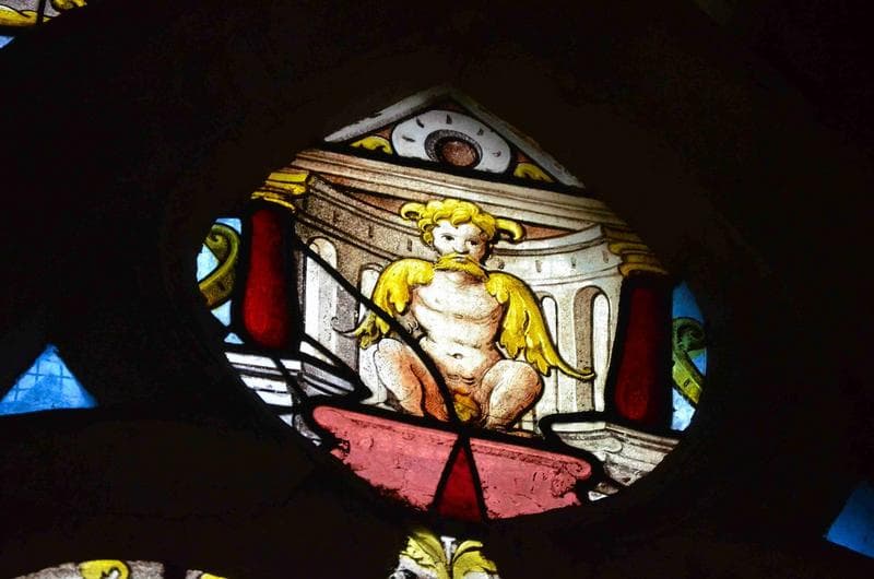 verrière : scènes de la vie du Christ, détail, personnage fantastique