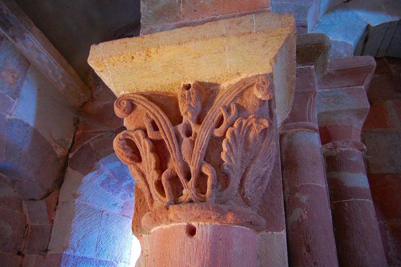 détail d'un des chapiteaux sculptés de la chapelle haute