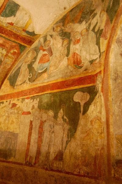 décor peint (chapelle Saint-Michel) : apparition de saint Michel sur le Mont-Gargan, apparition de saint Michel à l'évêque d'Avranches, vue partielle