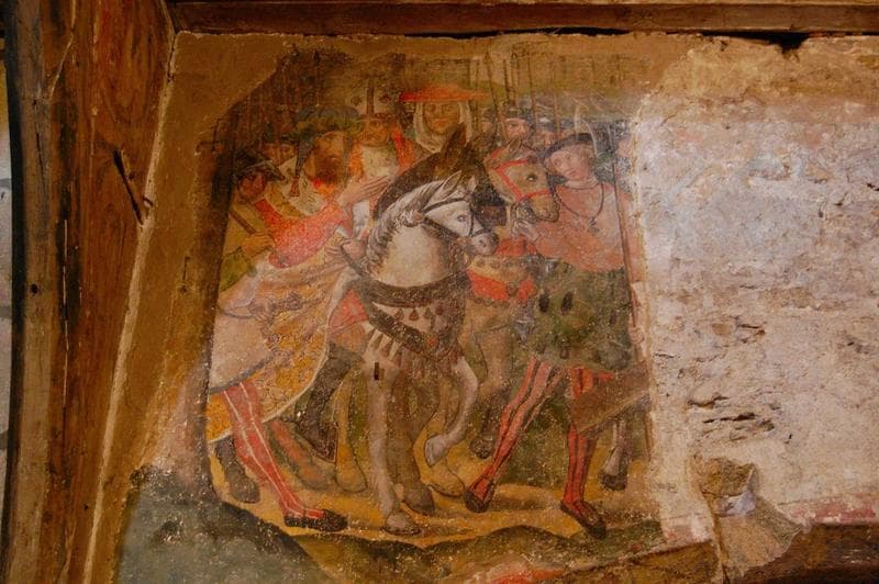 décor peint de la chapelle de la Vierge : Montée au Calvaire (la), vue partielle