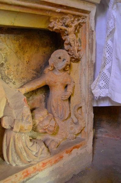 retable de saint Sébastien, détail : sainte Marguerite et le dragon