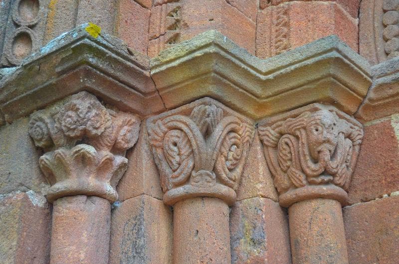 vue générale des chapiteaux sculptés situés à la gauche du porche occidental