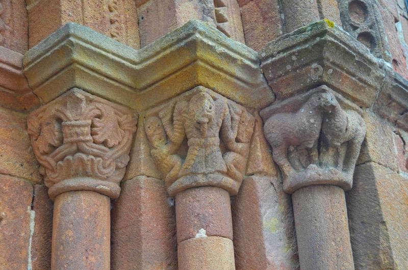 vue générale des chapiteaux sculptés situés à la droite du porche occidental