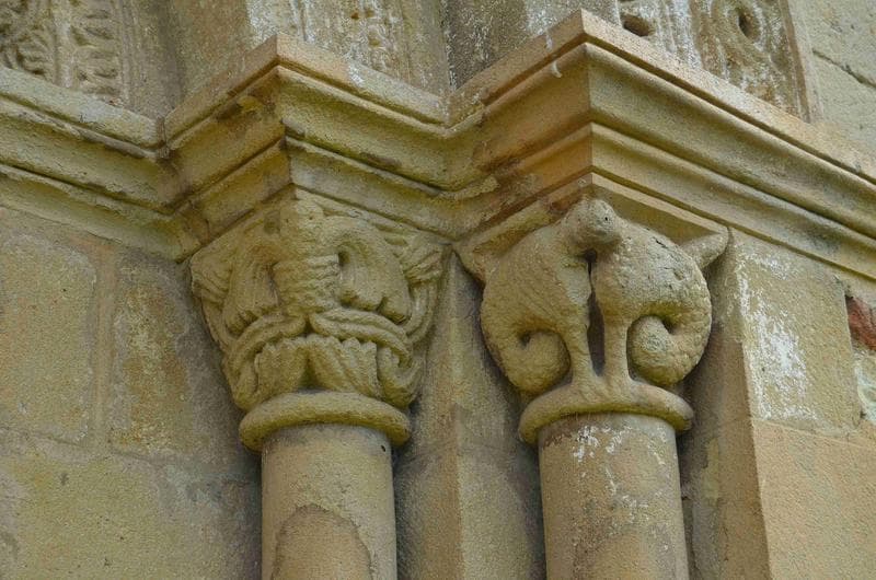 détail des chapiteaux sculptés situés à la droite de la porte sud