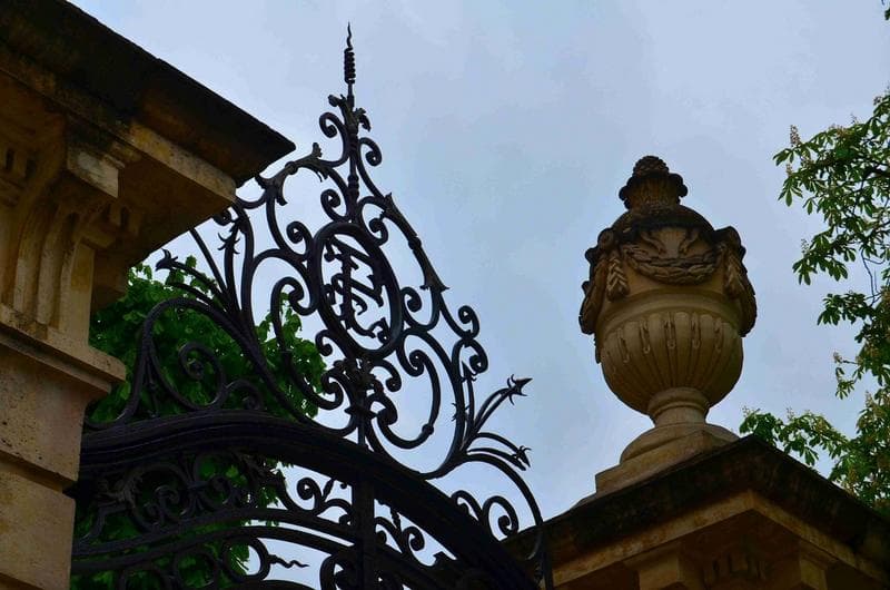 détail d'un pot à feu décorant une des piles du portail