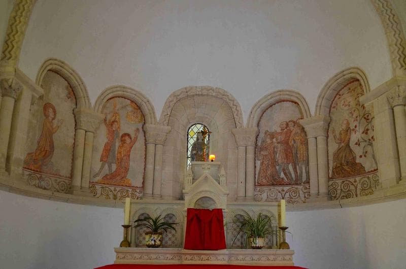 POP | Plateforme ouverte du patrimoinepeintures monumentales : Saintes en prières, La Décollation d'une martyre, Le Christ, Scènes de la vie de sainte Barbe, vue générale