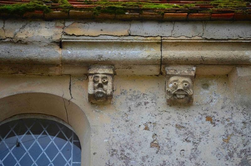 façade nord-est, détail, corbeaux de pierre sculptés