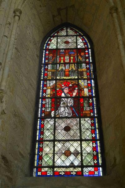 verrière du choeur : moine en prière, vue générale
