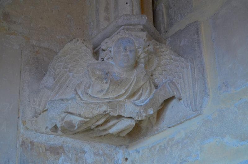 salle du 1er étage du donjon, détail d'une console : ange de saint Mathieu