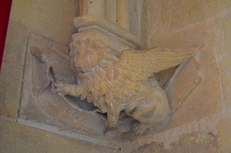 salle du 1er étage du donjon, détail d'une console : lion de saint Marc