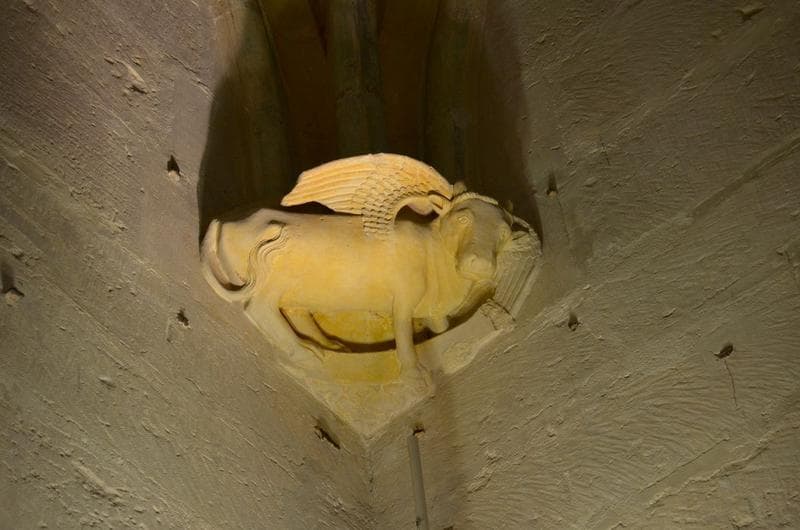 détail d'une console d'une des salles annexes du 1er étage : taureau de saint Luc