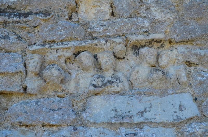 flanc nord, maçonnerie, détail : pierre de réemploi