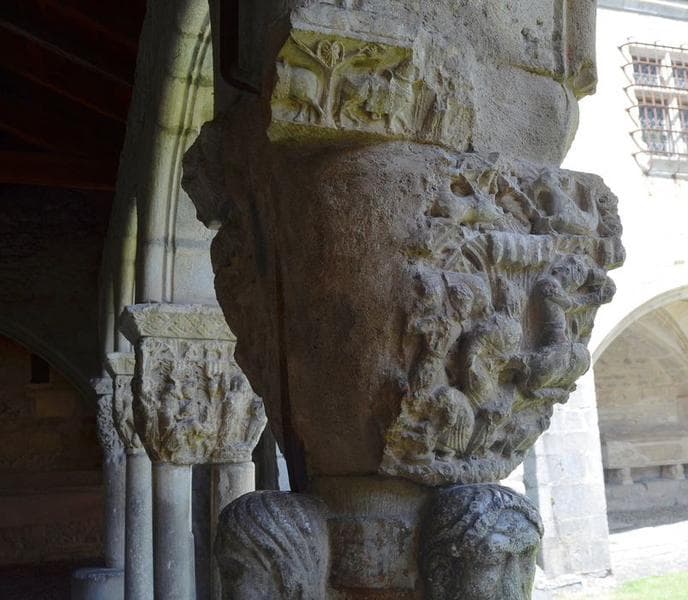 cloître, galerie ouest, détail d'un des chapiteaux jumelés sculptés
